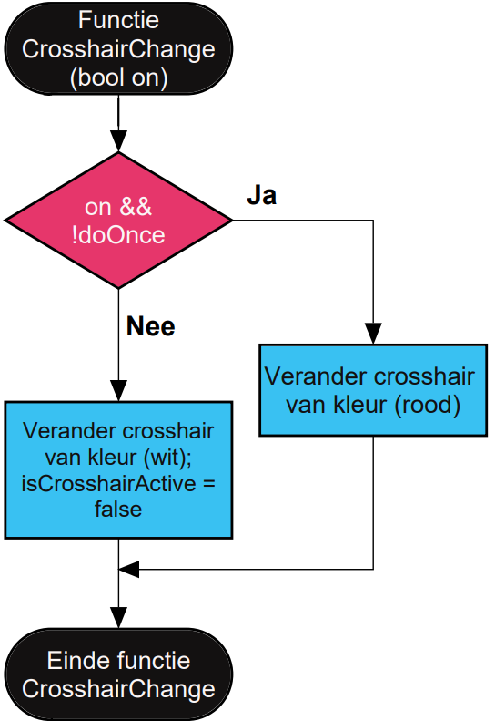 wordt geraakt. Als er een object geraakt wordt, wordt het object opgeslagen en gaan we de functie crosshairchange uitvoeren. Deze functie wordt later verduidelijkt.