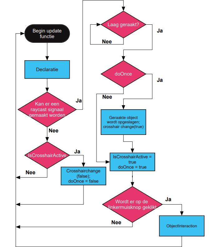 juiste laag. Als dit niet het geval is kunnen we met dit object geen interactie maken. Nadat het raycast signaal gemaakt is wordt er gekeken of de bepaalde laag