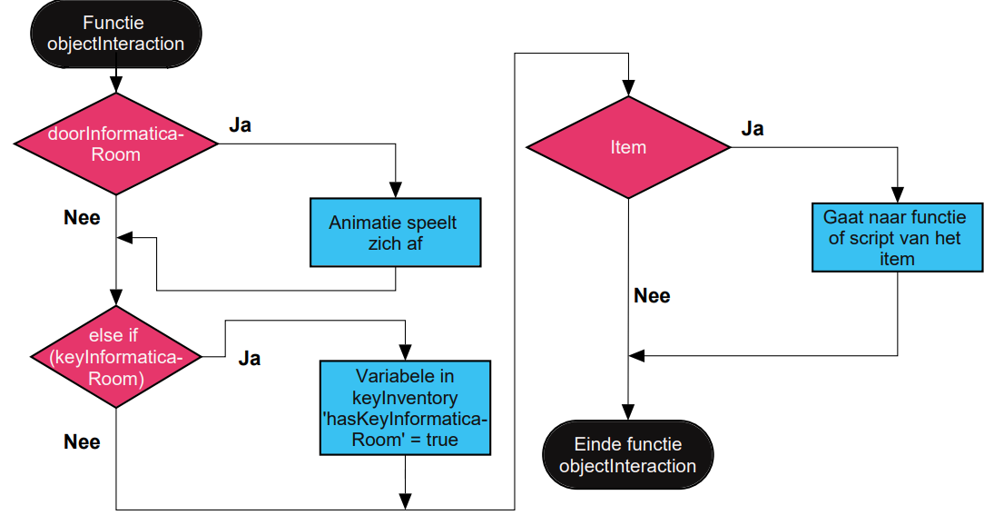 object er gedetecteerd is. Bij elk object wordt hierbij telkens een functie uitgevoerd die nodig is bij de interacties.