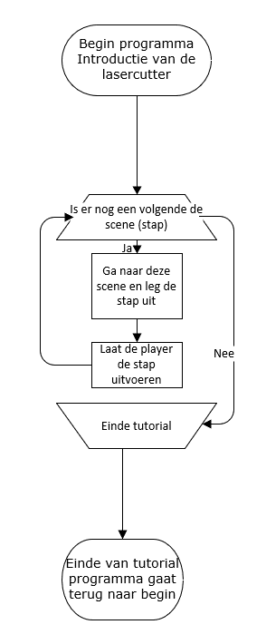 Dit is de flowchart voor de VR tutorial voor de lasercutter.