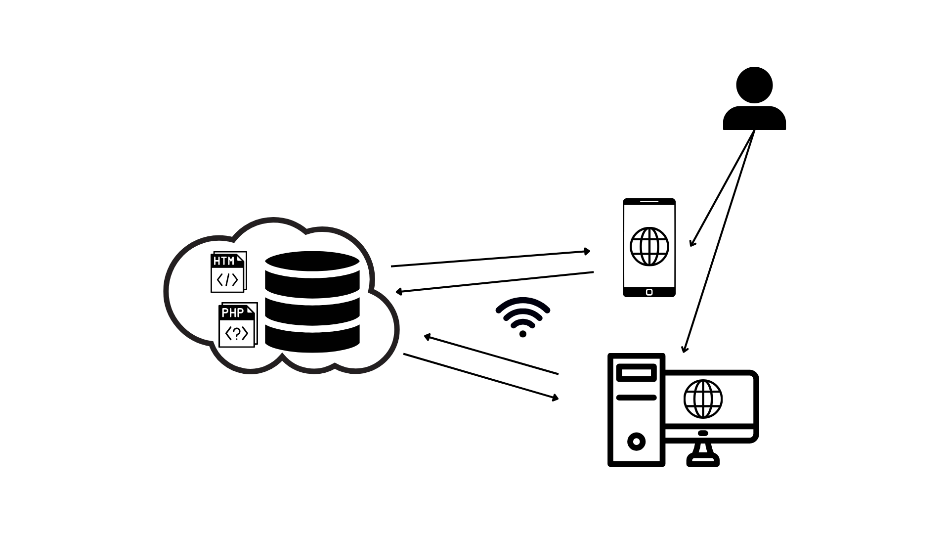 In de dataflow zien we dat de gebruiker op gebruikte toestellen data uitwisselt met de server waar de database en webapplicatie op staat
