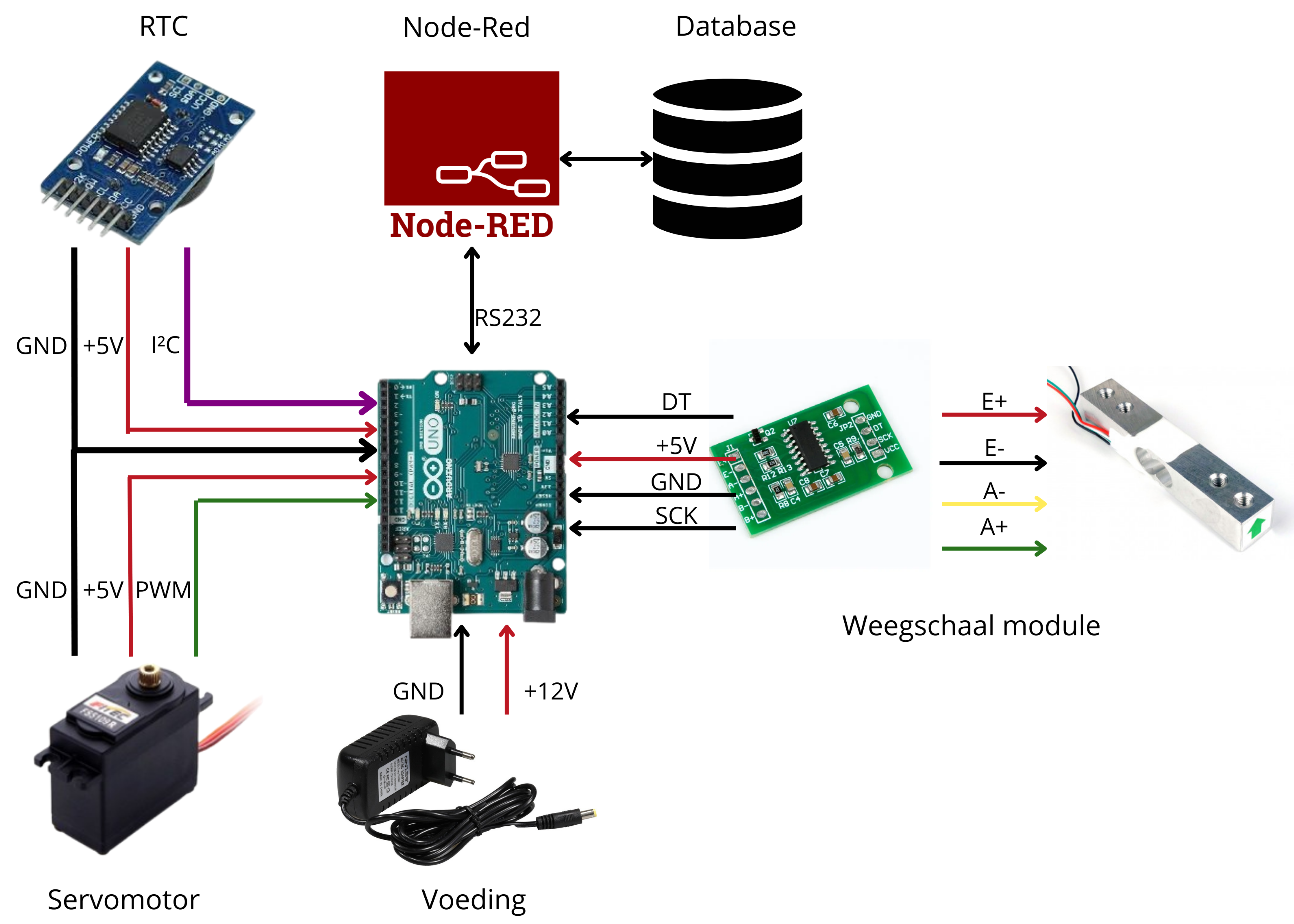 - De weegschaal module zorgt dat de Arduino het gewicht weet.